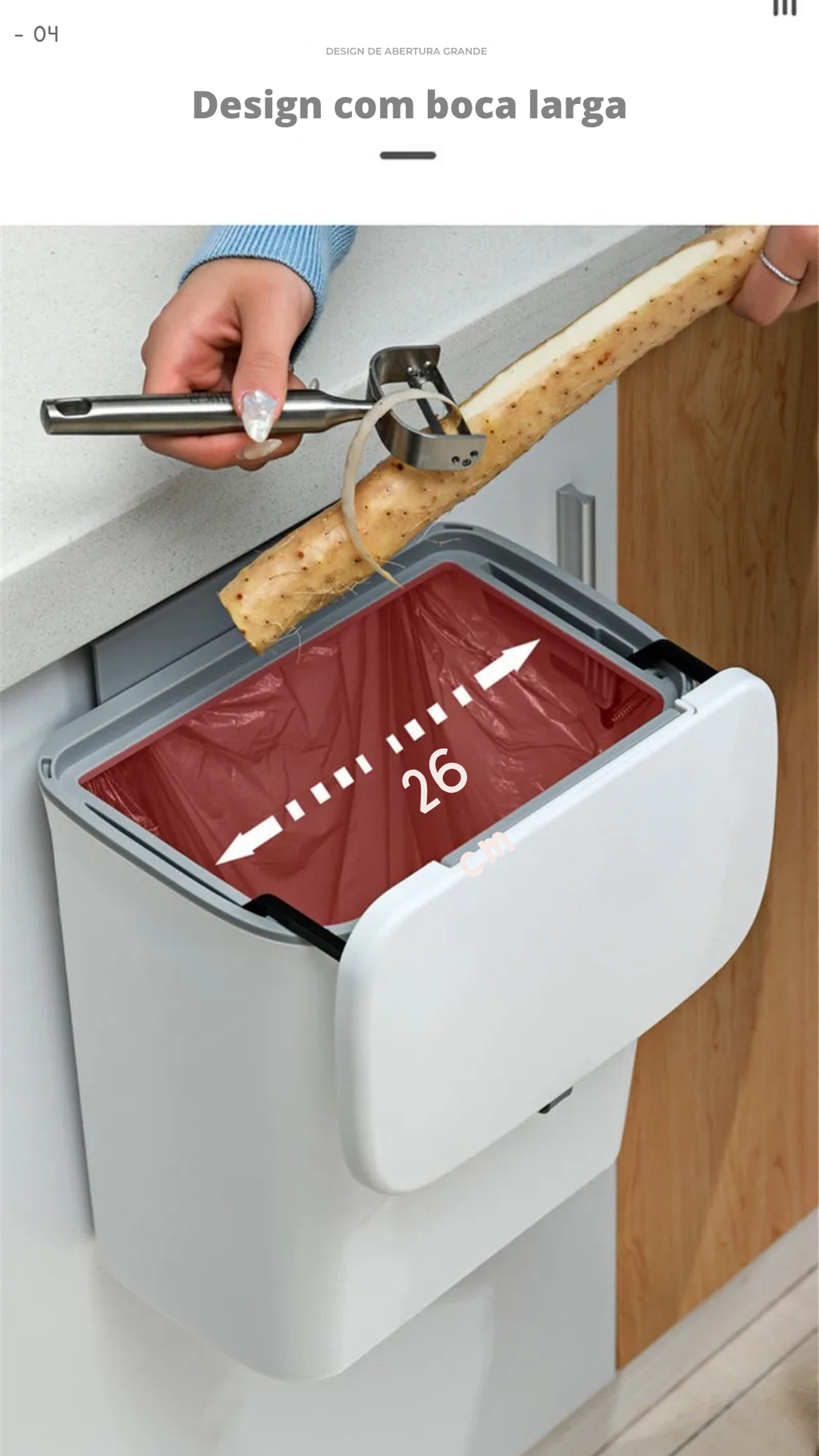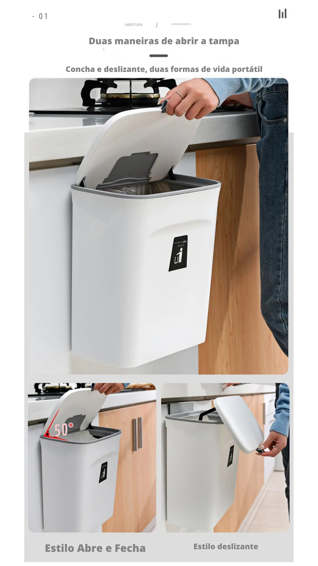 Tampa deslizante (rolante): fecha com praticidade, mantendo o ambiente limpo e sem odores